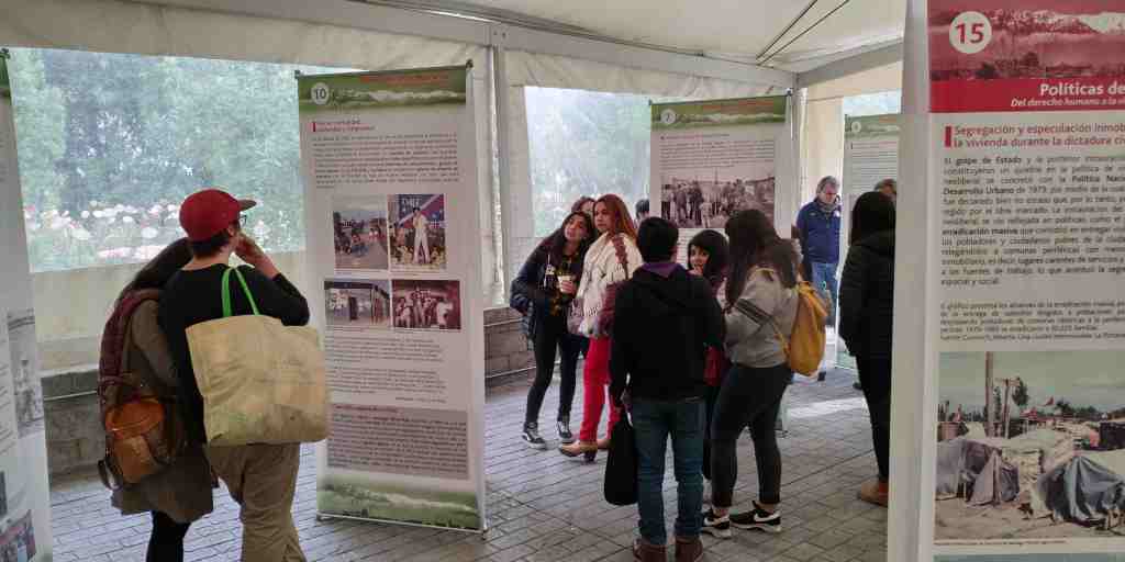 In this way, the project was related to two intersecting objectives. To recover the relationships with the communities surrounding the site of conscience, which made their recovery early, but which, as time passed and with the generational change, had begun to diminish and, on the other hand, to recover and value the memory of the inhabitants, associated with the processes of claiming housing, from the perspective of the human right to adequate housing.[xiii][xiv] As a result, a traveling exhibition was held based on testimonies and family photographs that were recovered during the investigation phase, which was inaugurated at the Villa Grimaldi Museum, and later presented in neighborhood spaces inside the communities, as well as a small publication that accompanied the exhibition, which was given to visitors, territory organizations and community-managed libraries.