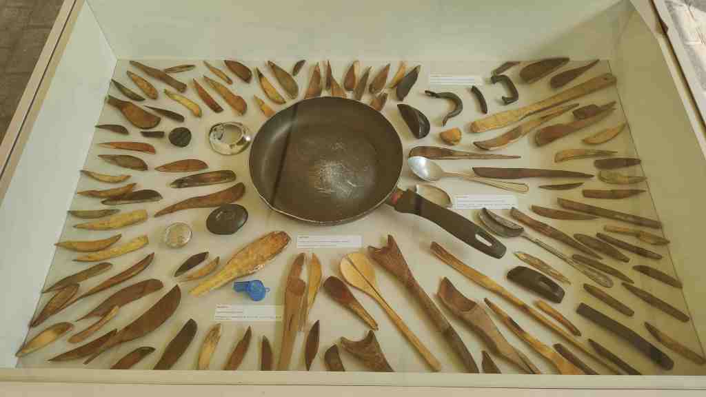 Figure 3: Presentation of one of the cabinets with domestic objects used in the demonstration to make noise, recovered with urban archeology techniques.